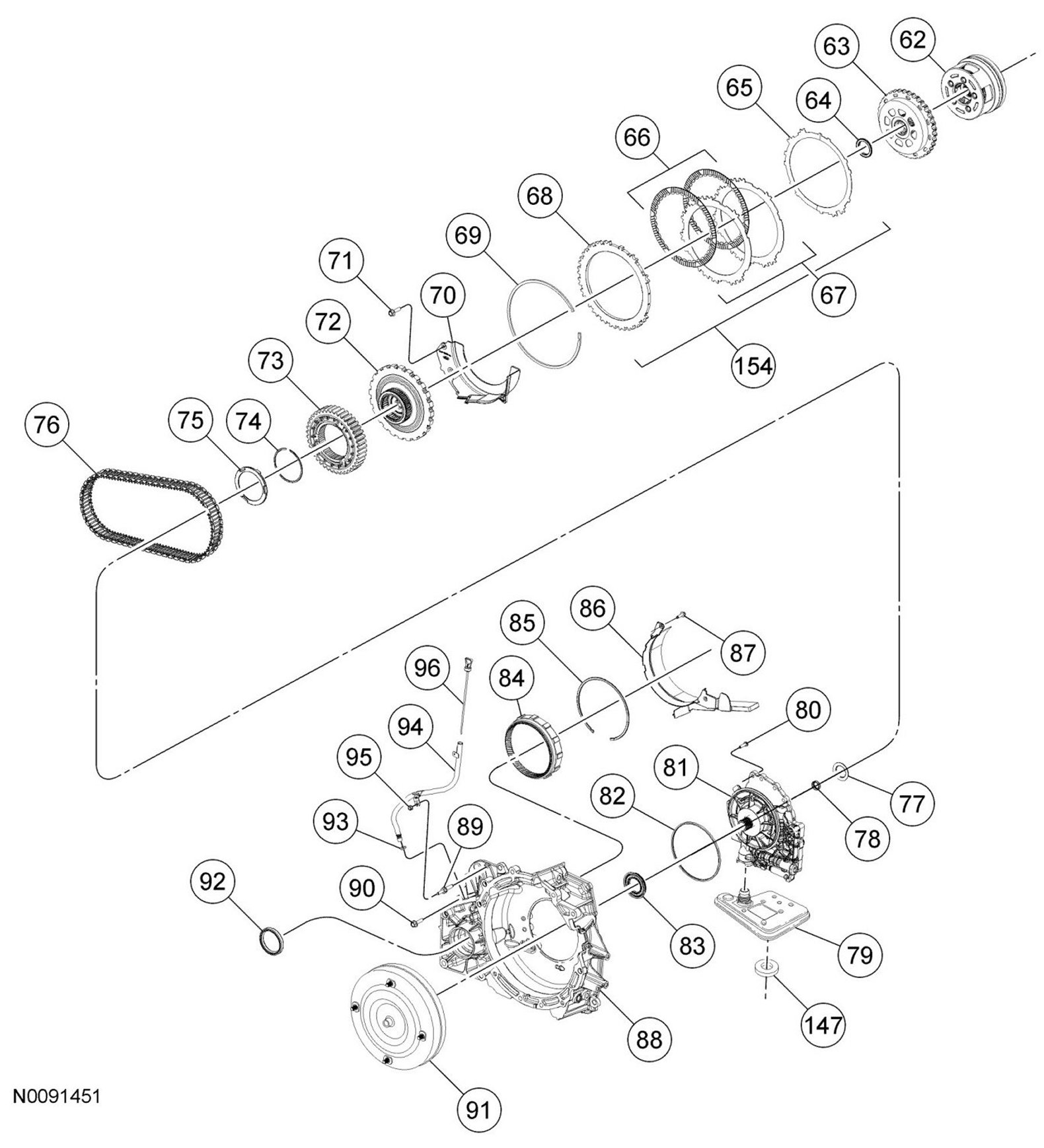 NOTE:When the intermediate (2, 6) clutch is correctly installed, a friction plate is on top.