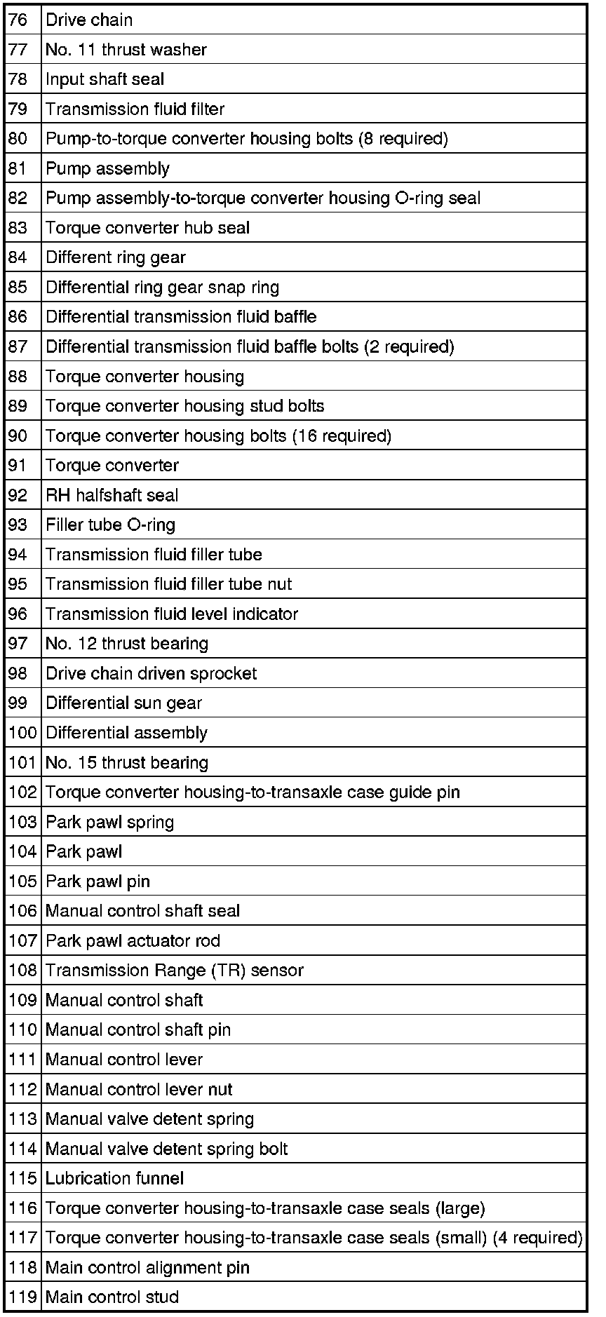 c. low/reverse and forward (1, 2, 3, 4) clutch hydraulic ports (located at the front of the transaxle case)