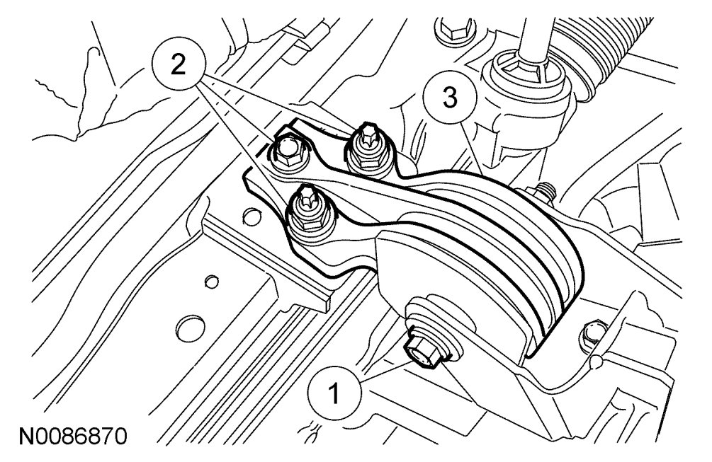 1. Remove the 3 bolts holding the transaxle front mount bracket.