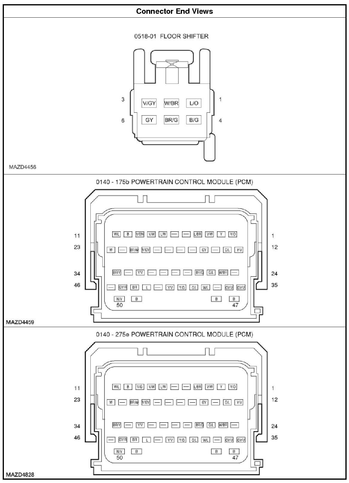 CONNECTOR END VIEWS - TRANSAXLE SHIFT CONTROL