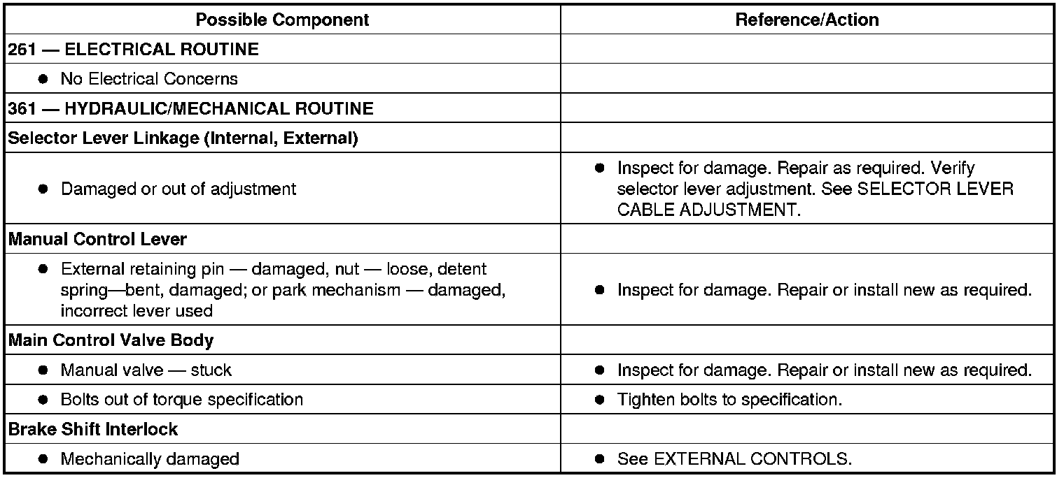 OTHER CONCERNS: SELECTOR LEVER EFFORTS HIGH
