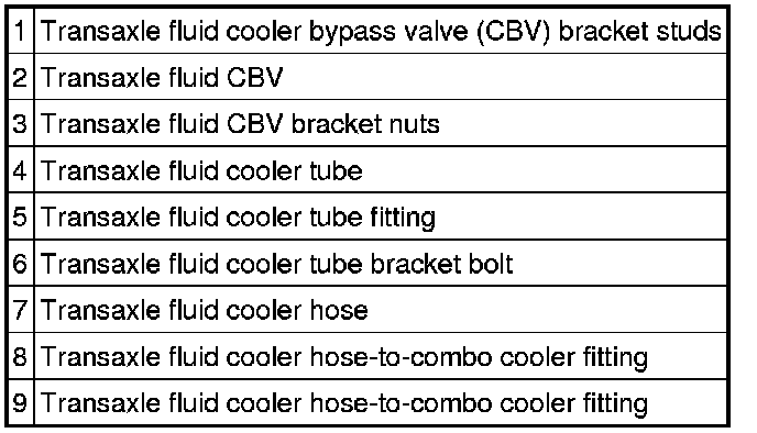 7. Disconnect the transaxle fluid cooler hoses from the transaxle fluid combo cooler and discard the transaxle fluid cooler tubes.