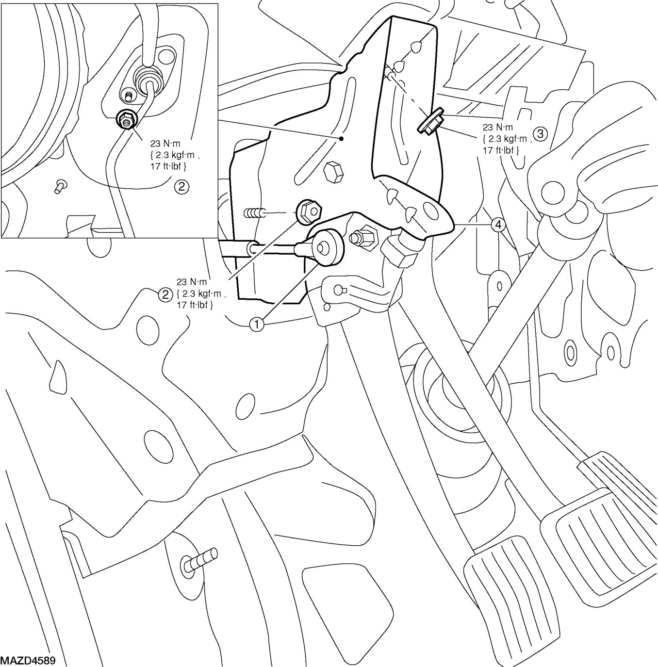 - To install, tighten to 23 Nm {2.3 kgf-m, 17 ft-lbf}.