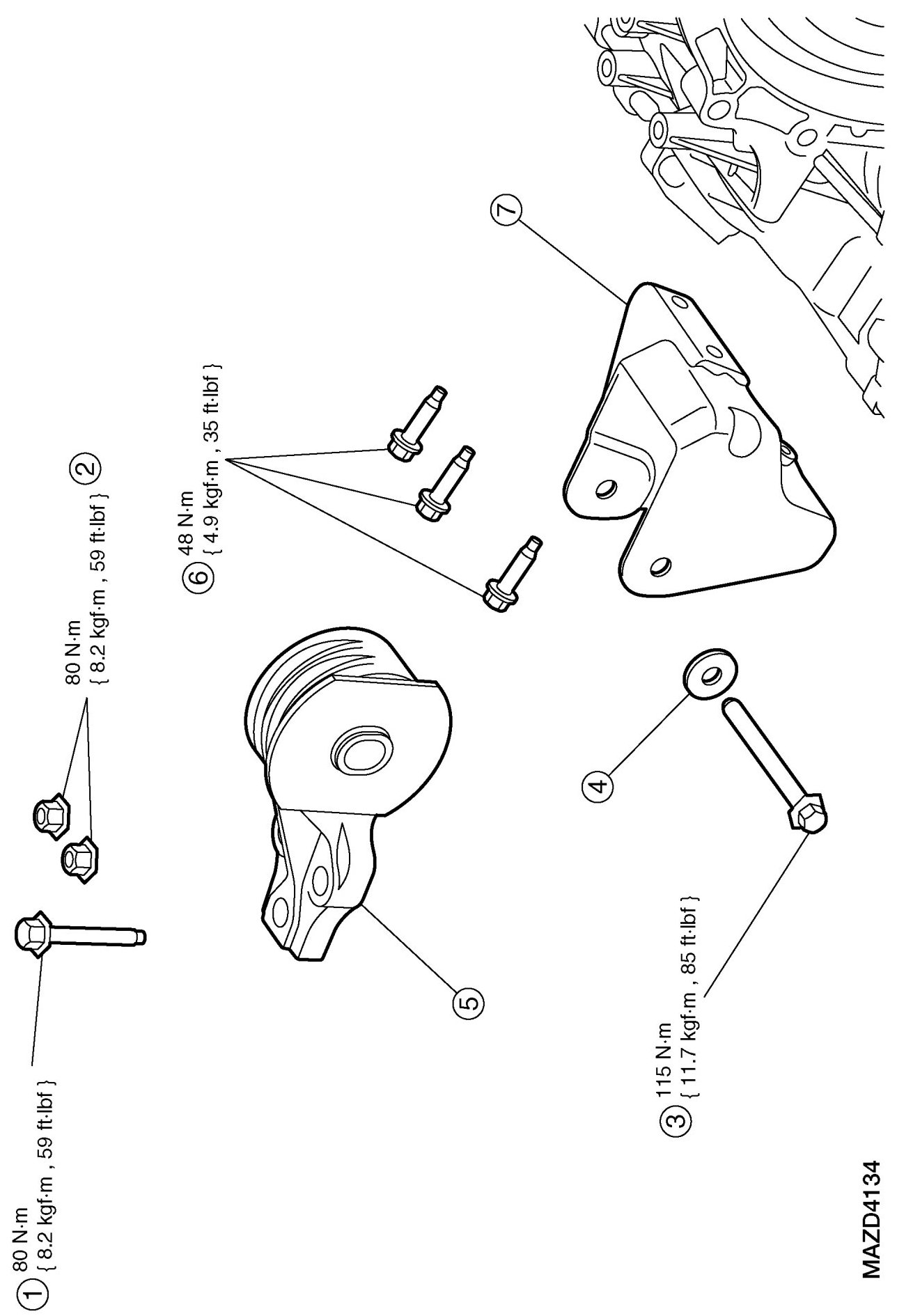 - To install, tighten to 115 Nm {11.7 kgf-m, 85 ft-lbf}.