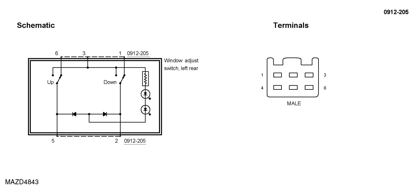 COMPONENT TEST - WINDOW CONTROL SWITCH - LEFT REAR