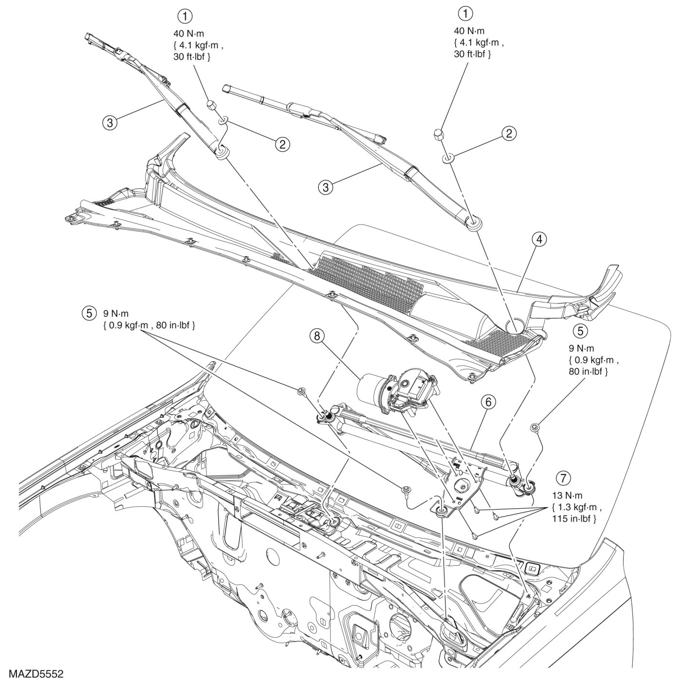 WIPER AND WASHER SYSTEM - EXPLODED VIEW, FRONT