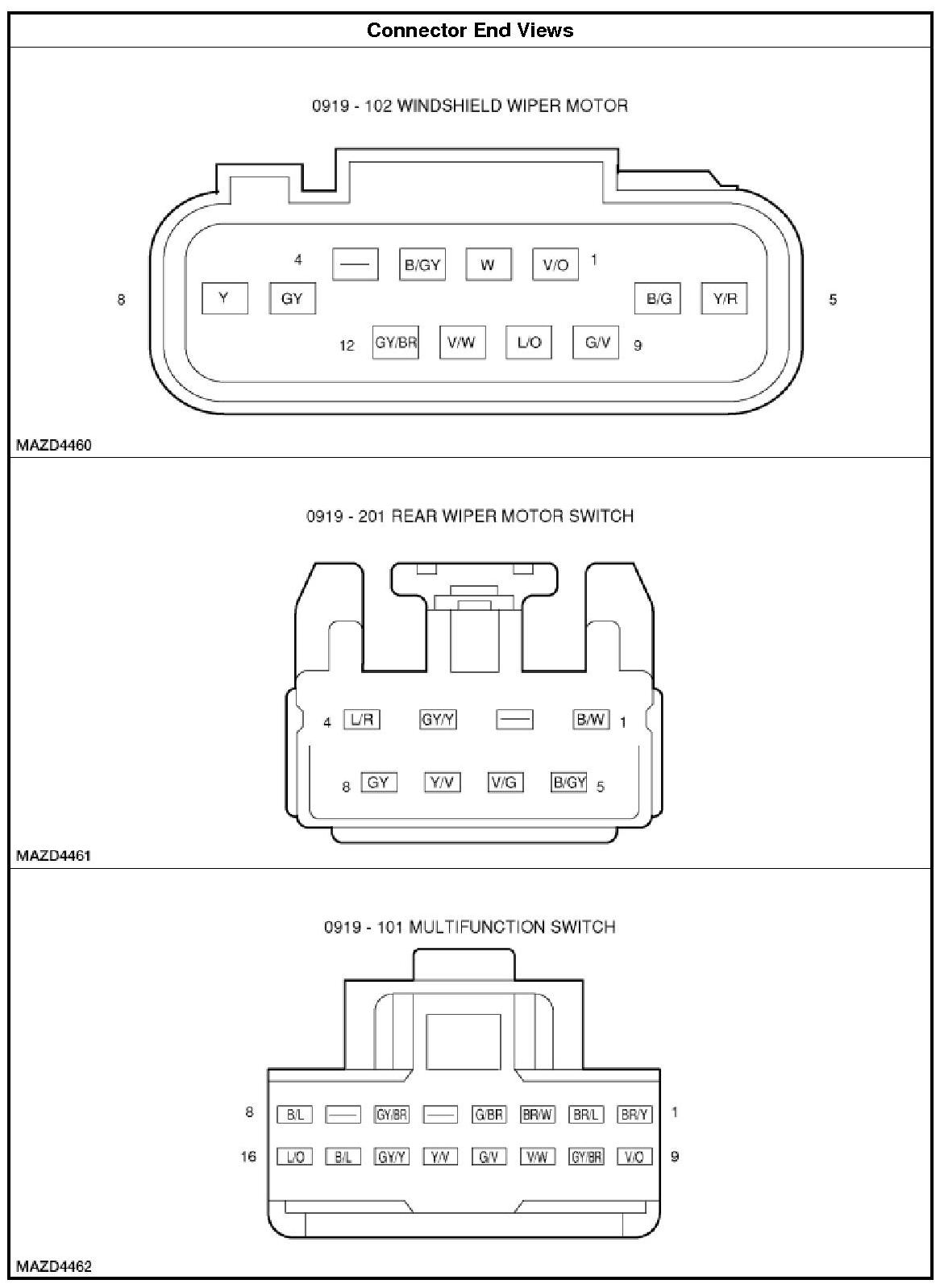Connector End Views - Wiper/Washer Systems