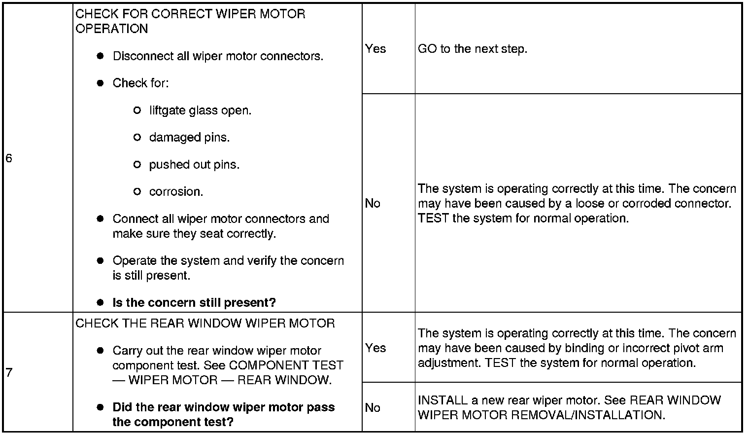 PINPOINT TEST 2: THE WIPERS ARE INOPERATIVE - REAR WINDOW
