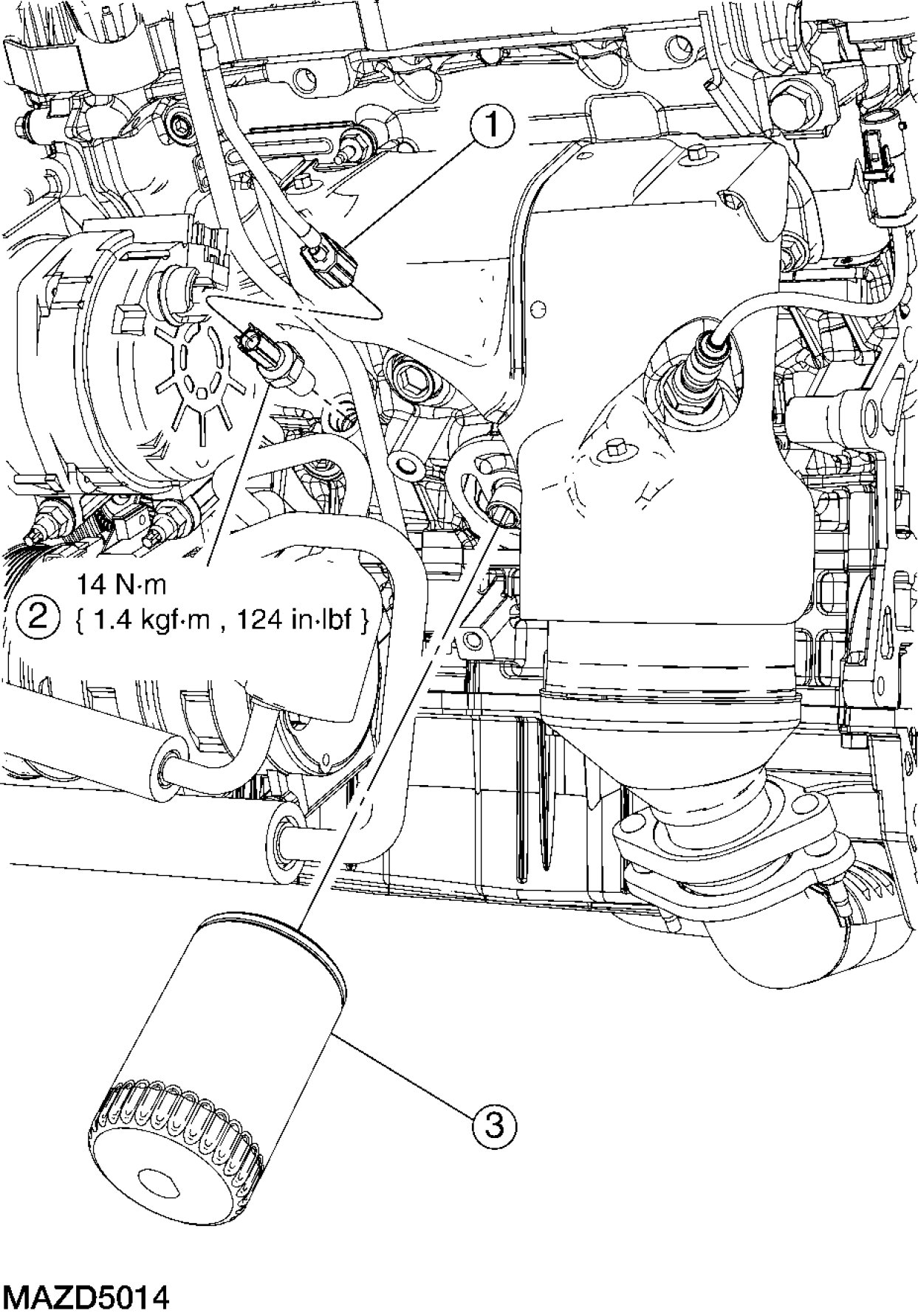 - To install, tighten to 14 Nm {1.4 kgf-m, 10 ft-lbf}.