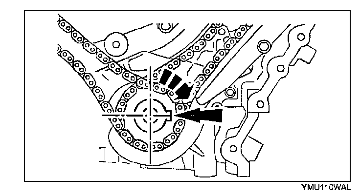 Chain Tensioner (RH) Disassembly Note1. Before removing chain tensioner (RH), turn the crankshaft clockwise to position the crankshaft keyway in the 3 o'clock position. (camshafts (RH) are in the neutral position.)