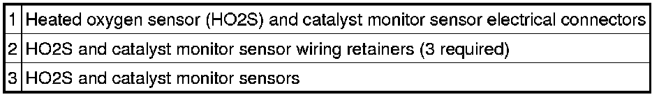 3. Disconnect the heated oxygen sensor (HO2S) and the catalyst monitor sensor electrical connectors.