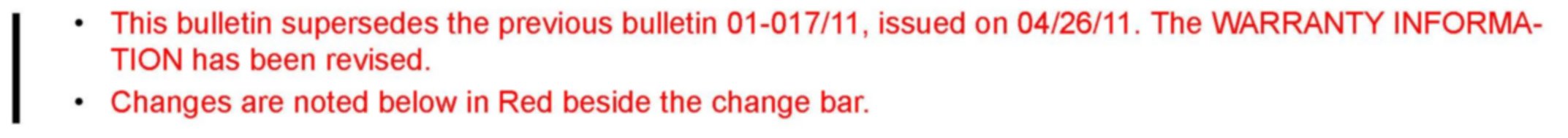 Bulletin No: 01-017/11Last Issued: 04/29/2011
