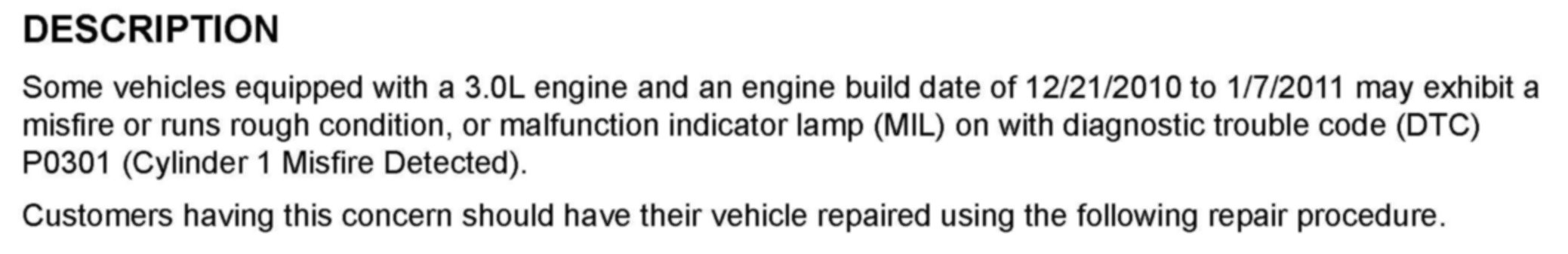 Engine - Misfire/Runs Rough/MIL ON/DTC P0301