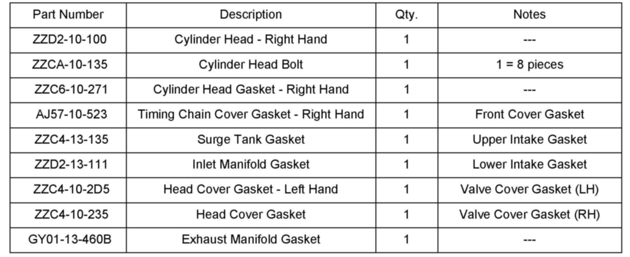 PARTS INFORMATION
