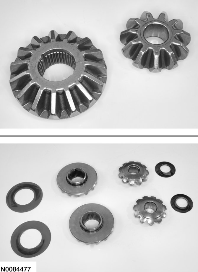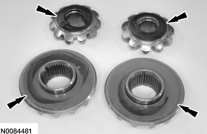 1. Clean and inspect the side gears and spider gears and washers for damage or excessive wear and install new components as necessary.