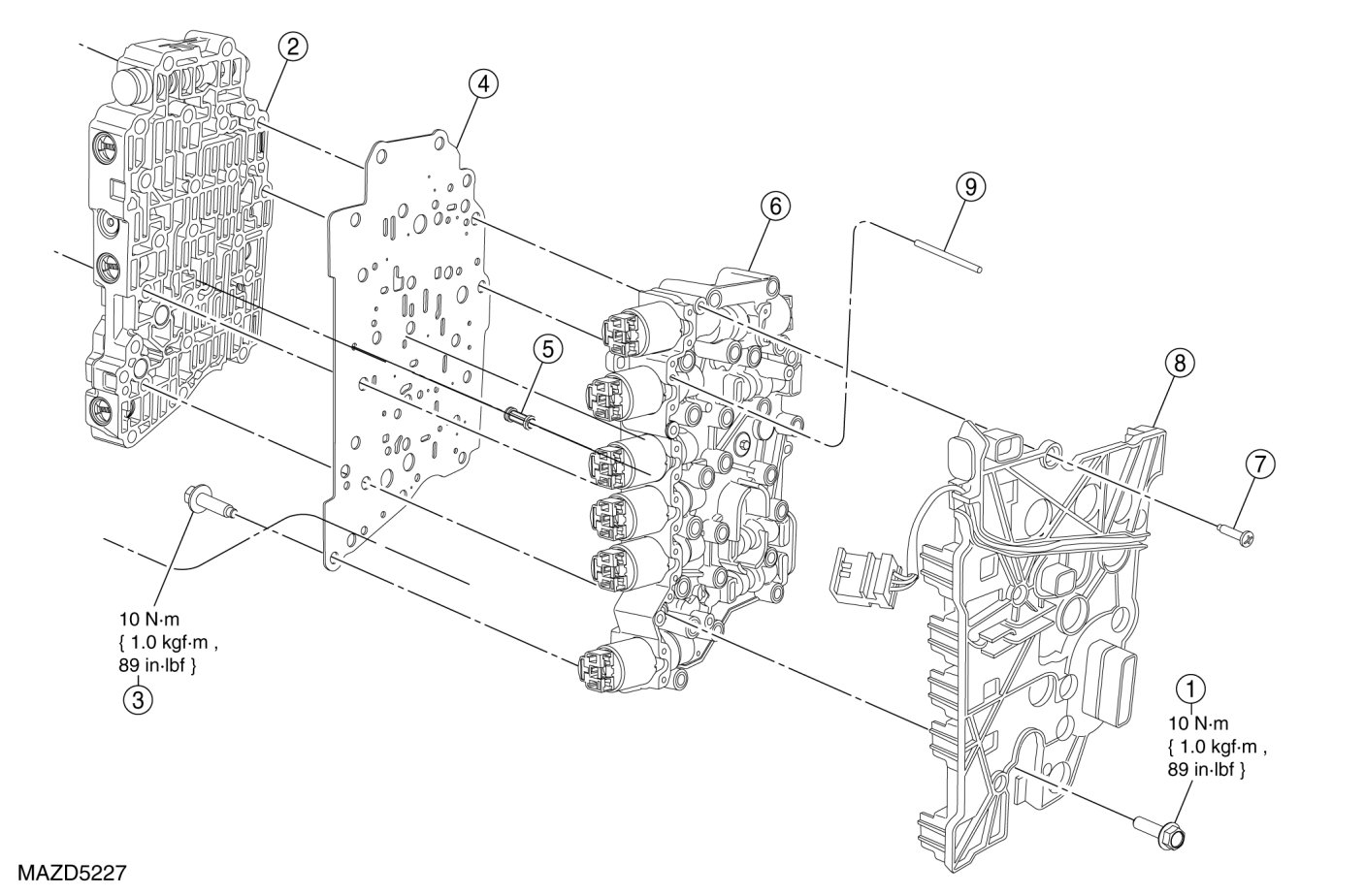 - Tighten to 10 Nm {1.0 kgf-m, 89 in-lbf}.