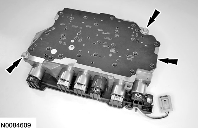 12. Position the solenoid body assembly on the valve body and install the 2 bolts.
