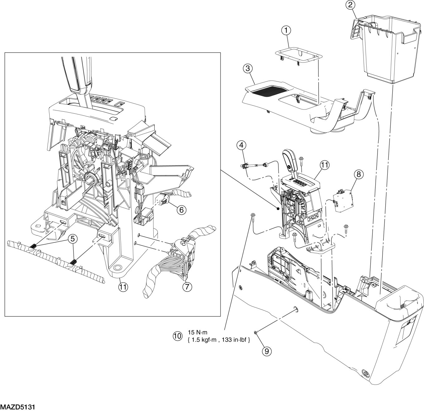 - Tighten to 15 Nm {1.5 kgf-m, 133 in-lbf}.