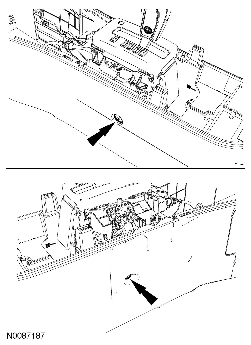 2. Install the 2 center console screws.