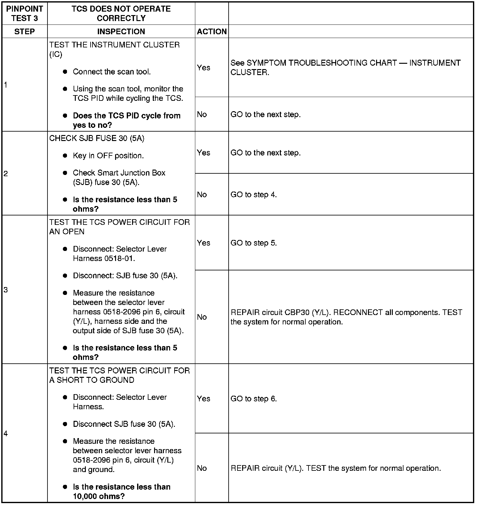 Pinpoint Test 3: Transmission Control Switch (TCS) Does Not Operate Correctly