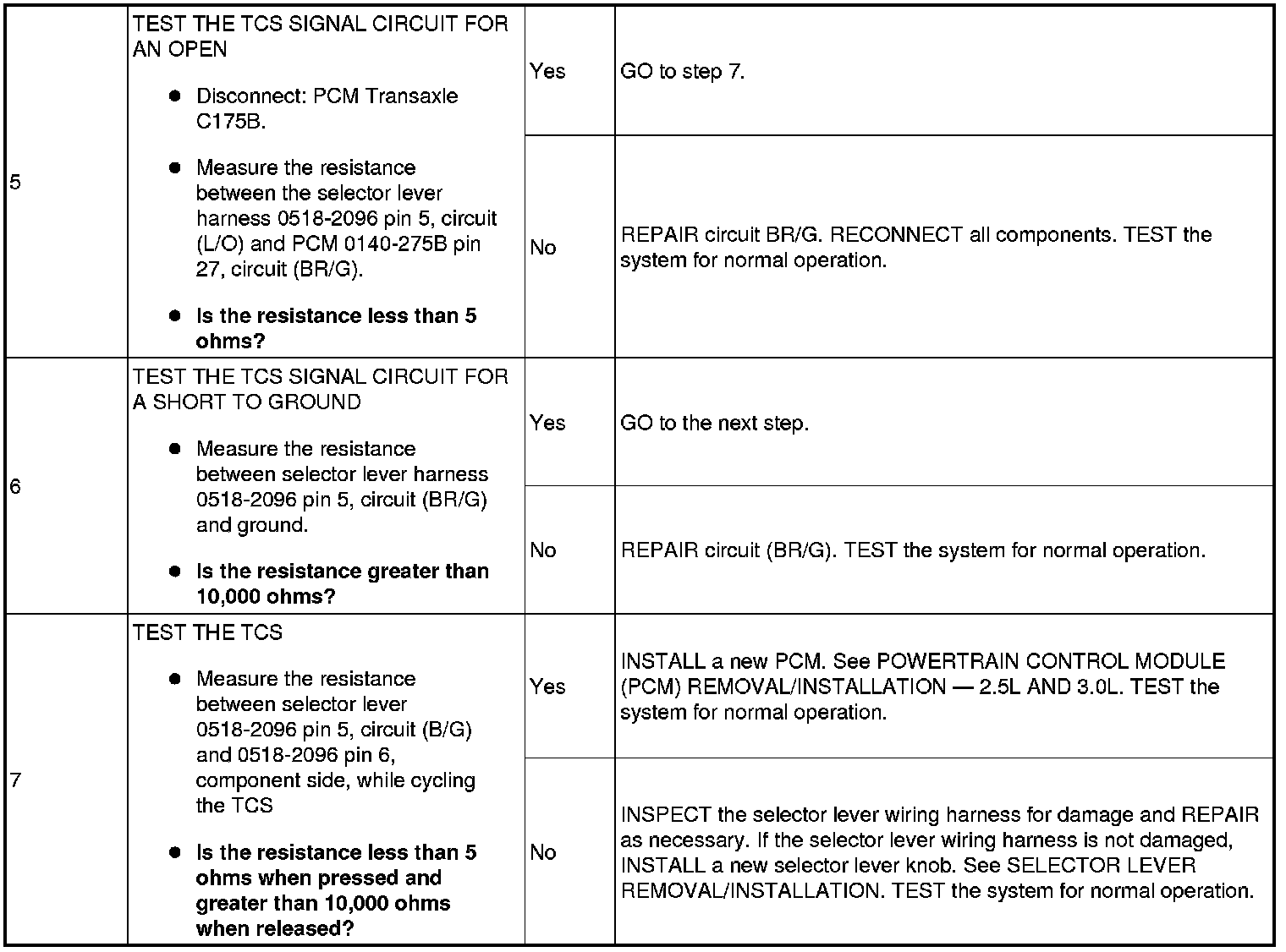 PINPOINT TEST 3: TRANSMISSION CONTROL SWITCH (TCS) DOES NOT OPERATE CORRECTLY