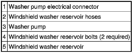 Wiper and Washer System - Exploded View, Washer Pump and Reservoir