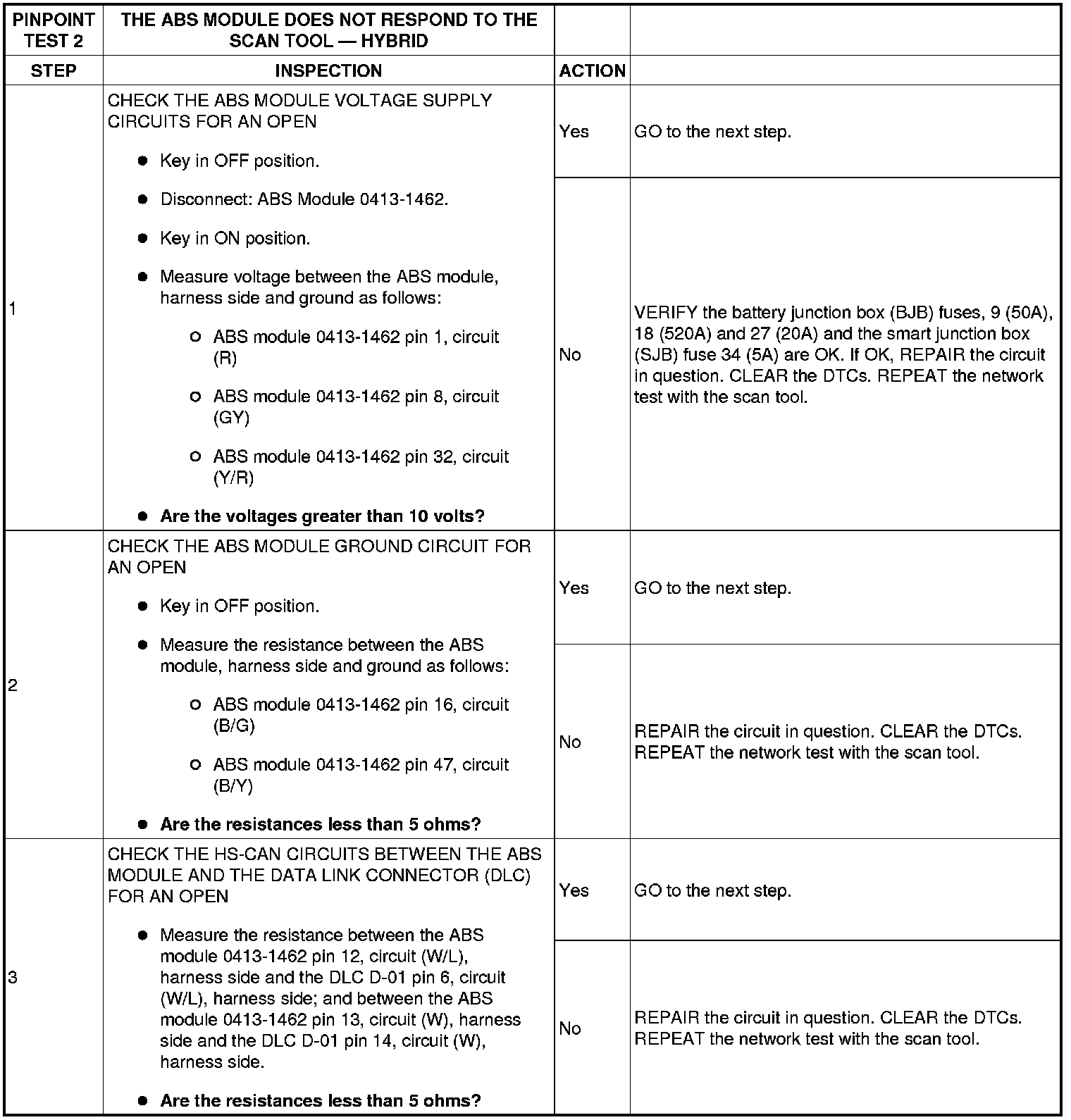 PINPOINT TEST 2: THE ABS MODULE DOES NOT RESPOND TO THE SCAN TOOL - HYBRID