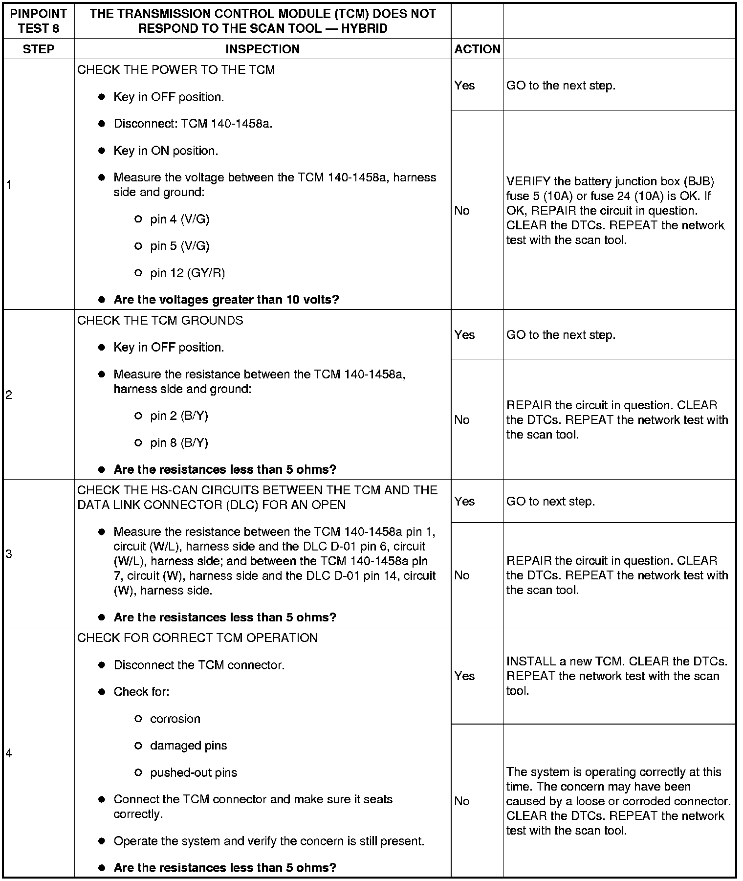 PINPOINT TEST 8: THE TRANSMISSION CONTROL MODULE (TCM) DOES NOT RESPOND TO THE SCAN TOOL - HYBRID