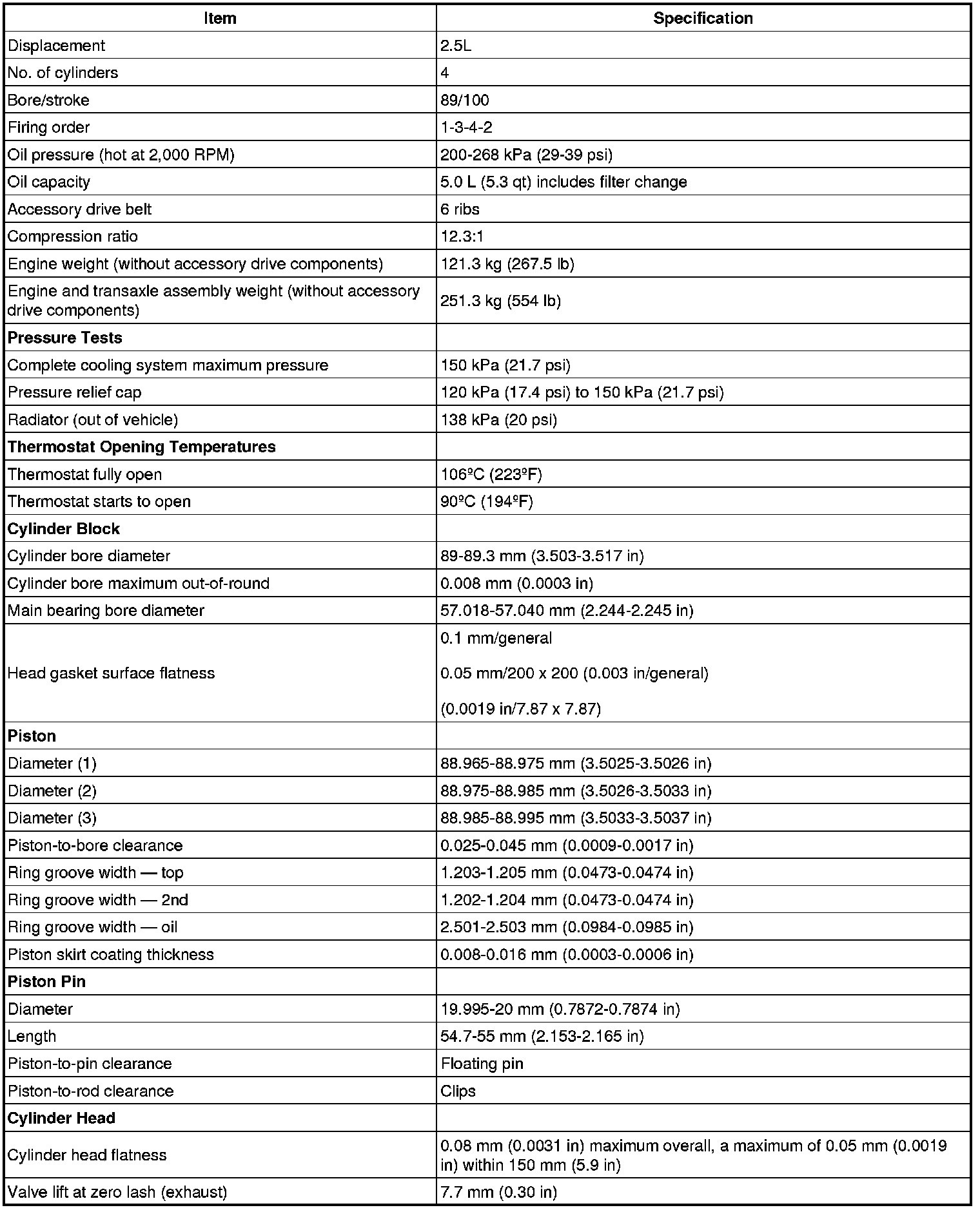 Engine Technical Data