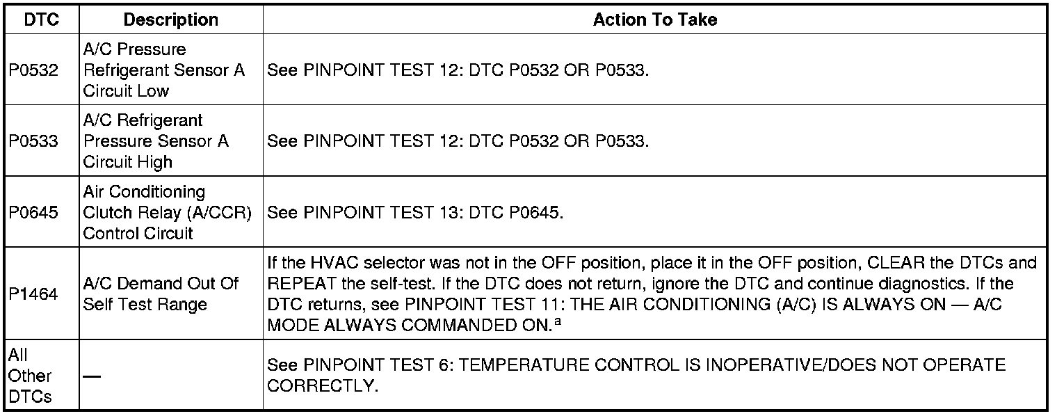a PCM DTC P1464 will set if the function selector is in PANEL with A/C button pressed, DEFROST or MAX A/C mode when the on-demand self test is being run.