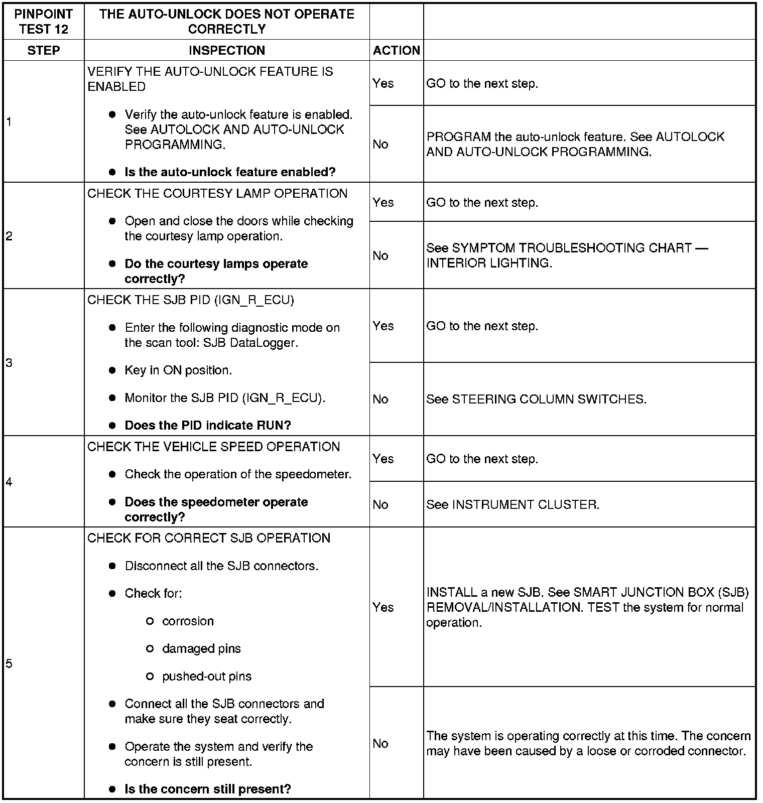 Pinpoint Test 12: The Auto-Unlock Does Not Operate Correctly