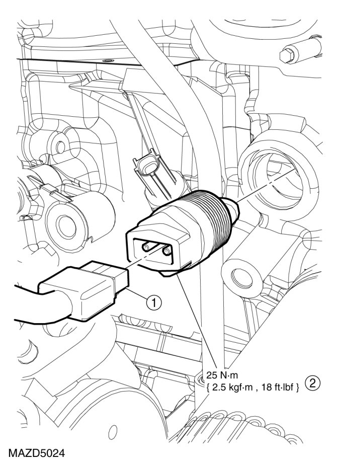 - To install, tighten to 25 Nm {2.5 kgf-m, 18 ft-lbf} (3.0L).