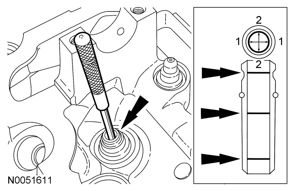 1. Use a ball gauge to determine the inner diameter of the valve guides in 2 directions at the top, middle and bottom of the valve guide.