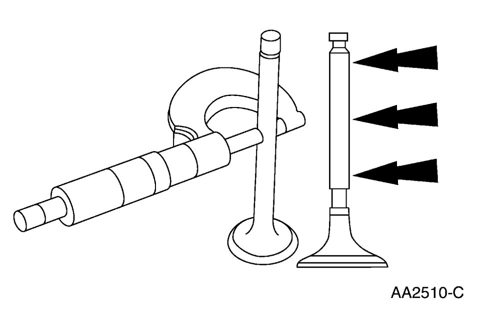 Measure the diameter of each intake and exhaust valve stem at the points shown. Verify the diameter is within specification.