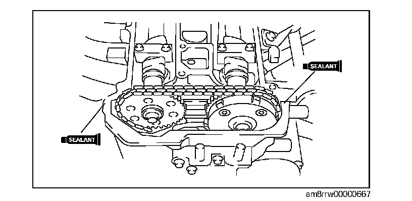 ^ Install the cylinder head cover within 10 min of applying the silicone sealant.