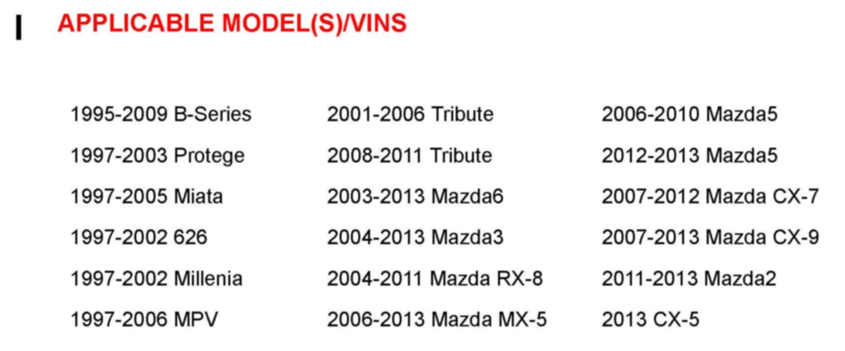 APPLICABLE MODEL(S)/VINS