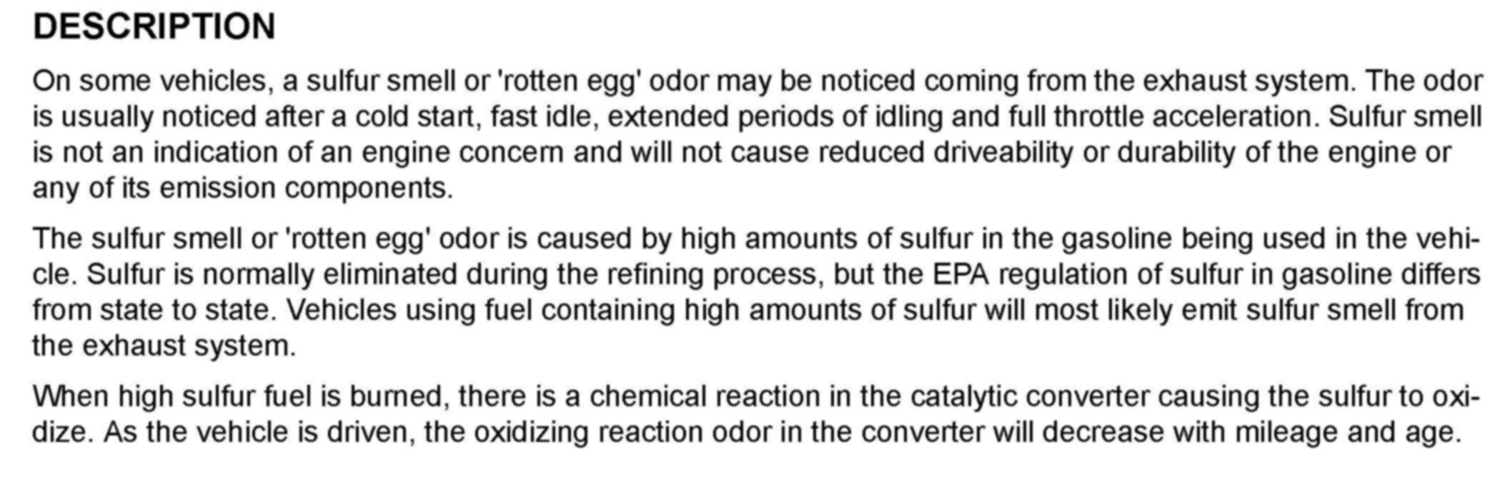 Exhaust System - Excessive Sulfur Odors