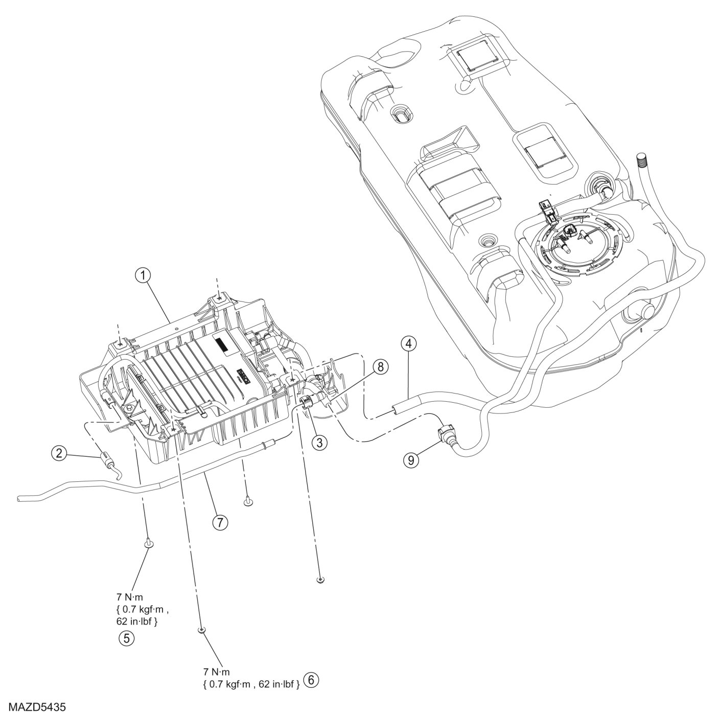 - To install, tighten to 7 Nm {0.7 kgf-m, 62 in-lbf}.