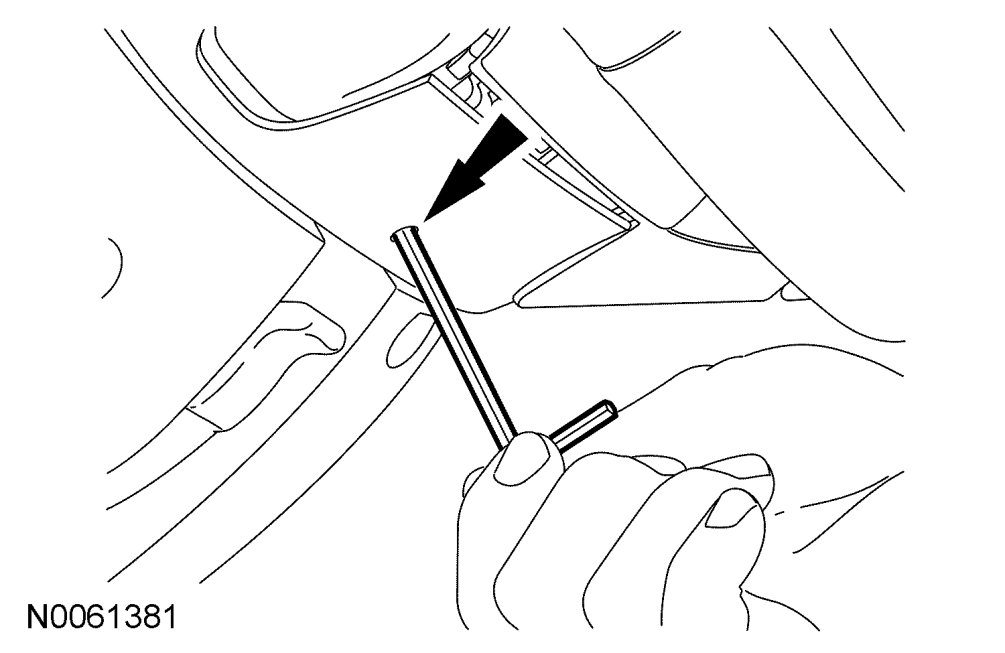 2. Using a 3-mm Allen wrench or a suitable tool, place it in the driver air bag module release hole on the underside of the steering wheel.