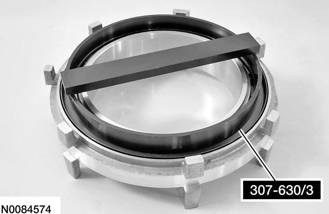 13. Position the forward (1, 2, 3, 4) clutch piston on Seal Protector 307-628/2 and Seal Protector 307-629 and push it down into the center support.