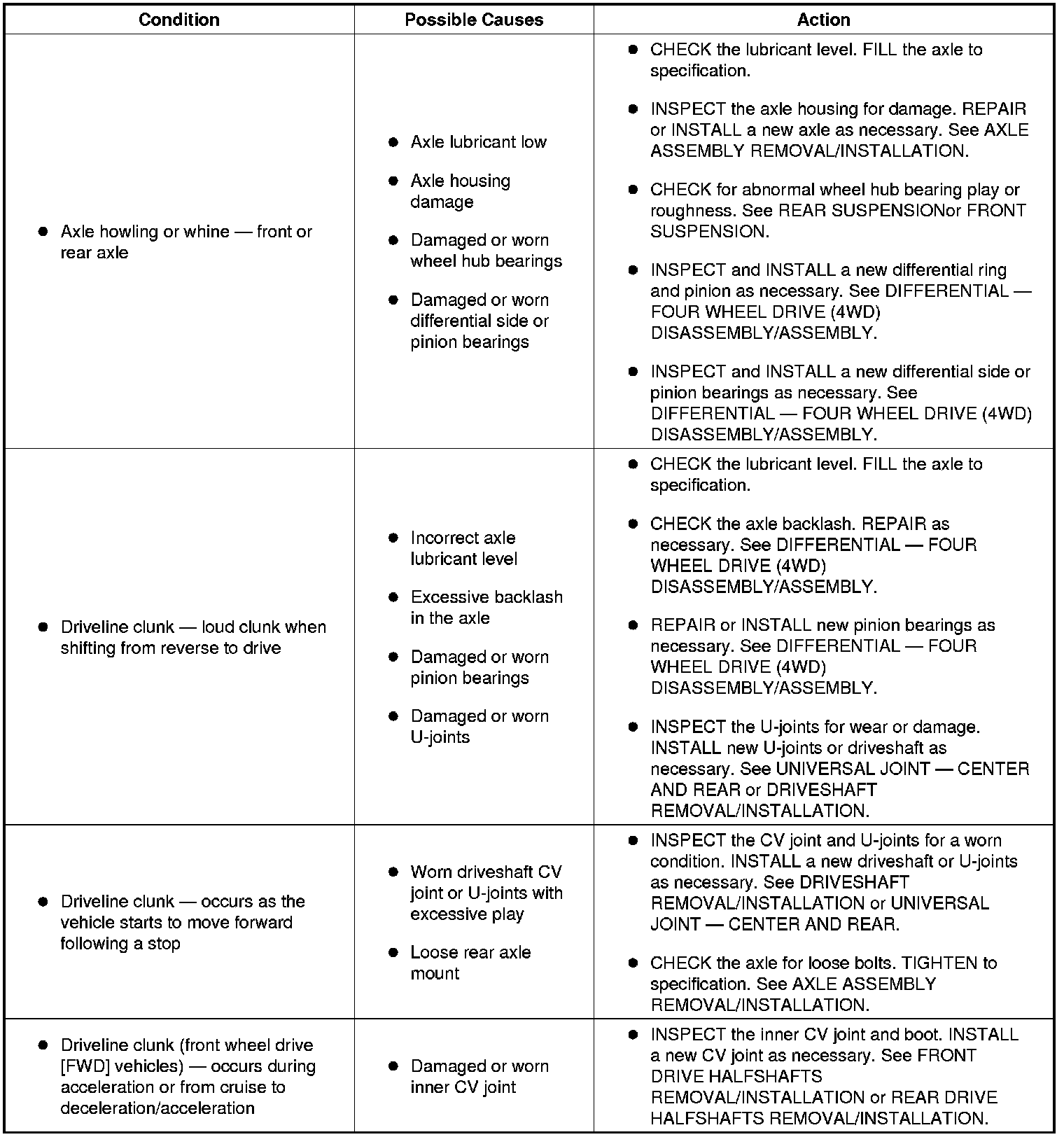 Drive Axles, Bearings and Joints: Testing and Inspection