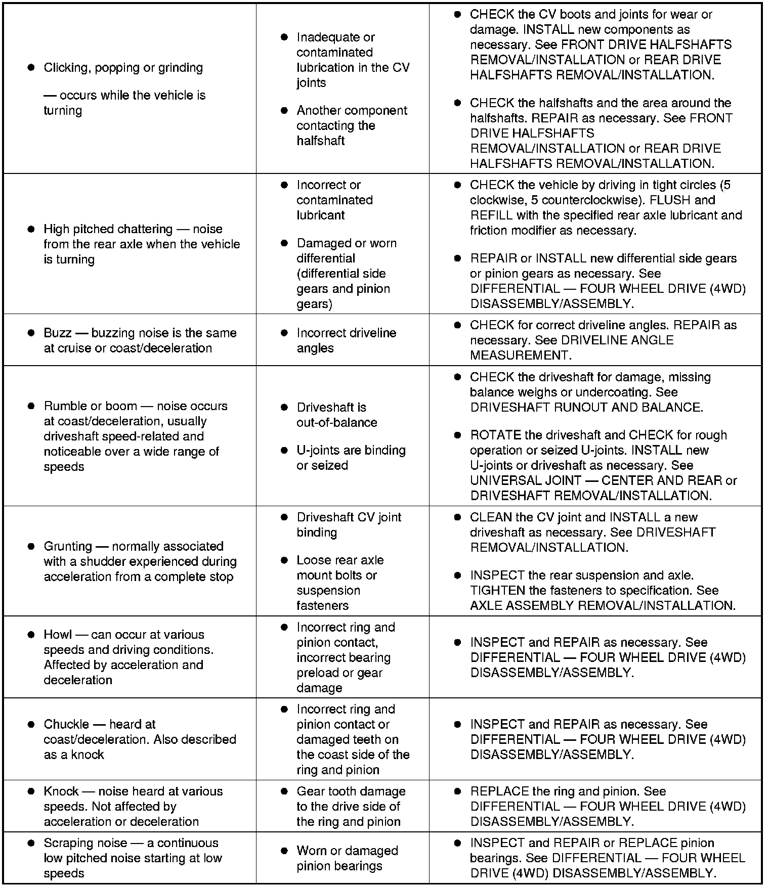 Symptom Charts - Noise, Vibration and Harshness (NVH)