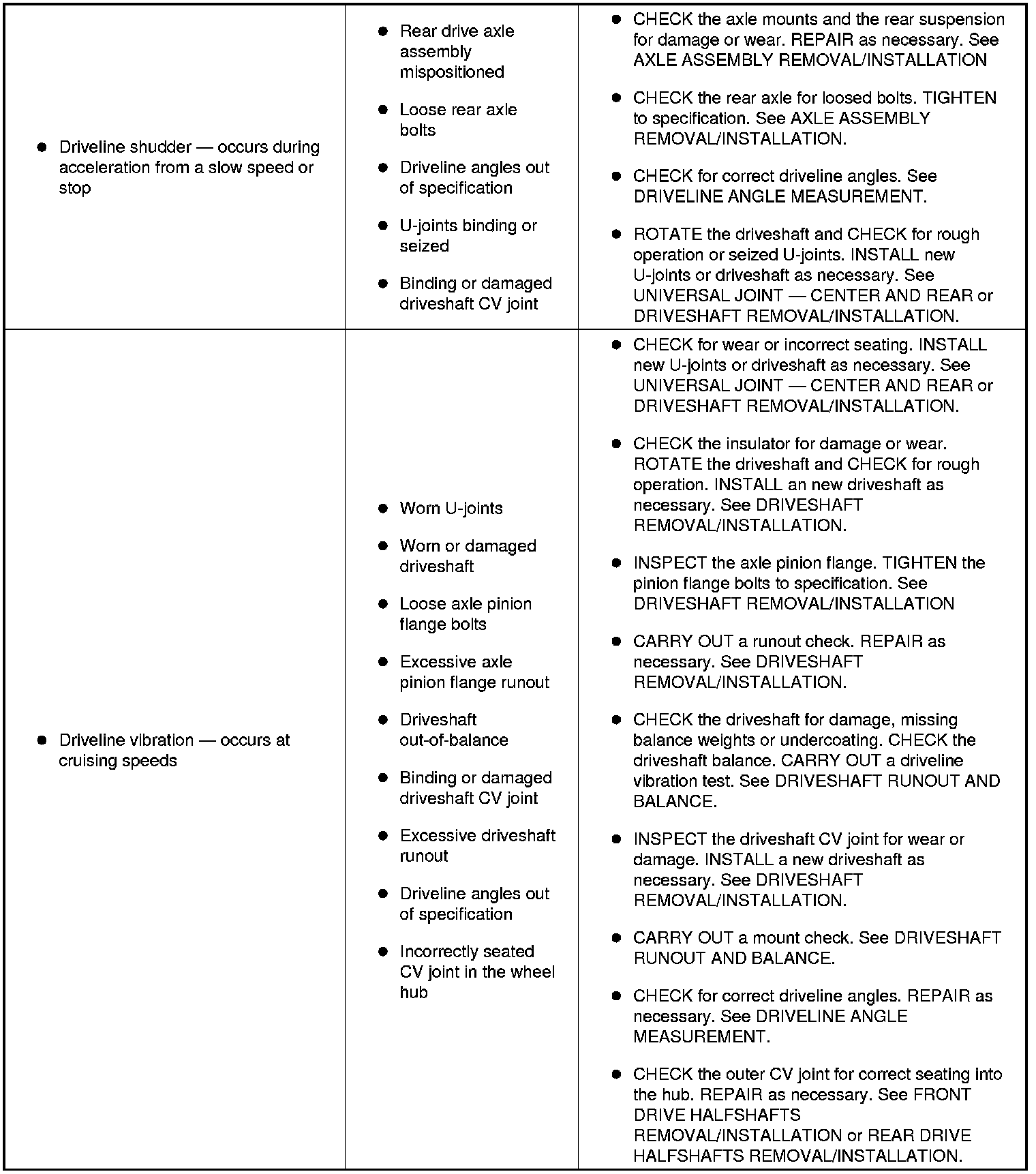 DRIVELINE SYSTEM INSPECTION/VERIFICATION