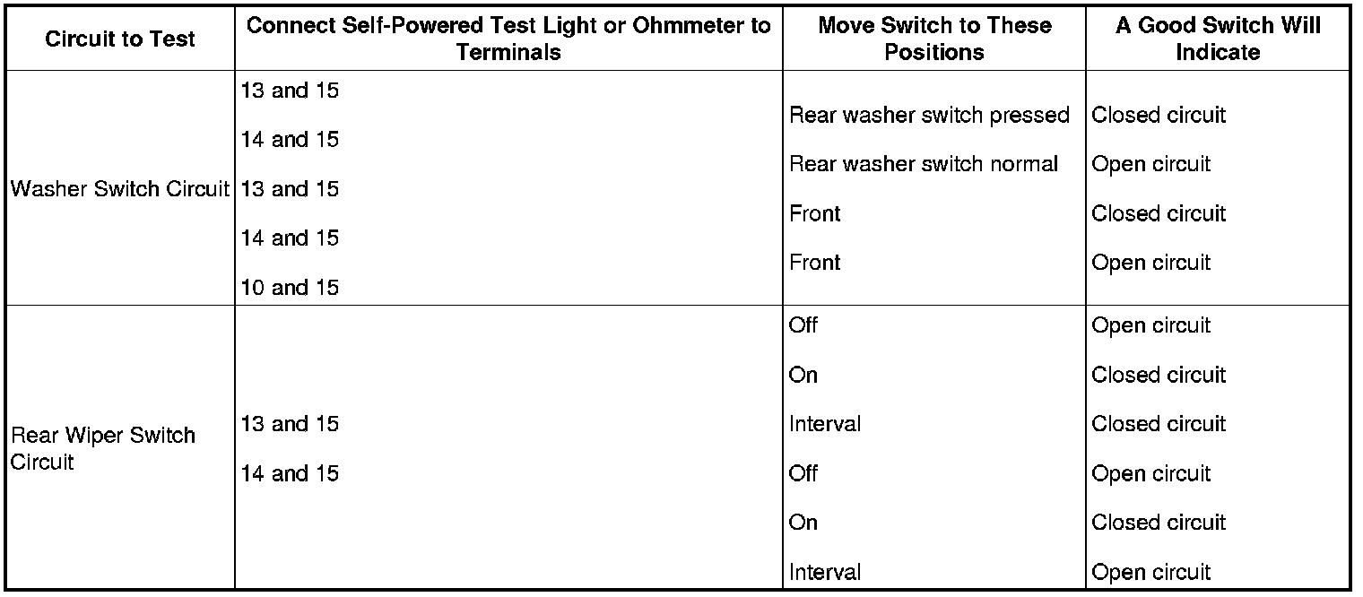 Inspect for continuity between the multifunction switch terminals using a self-powered test light or an ohmmeter.