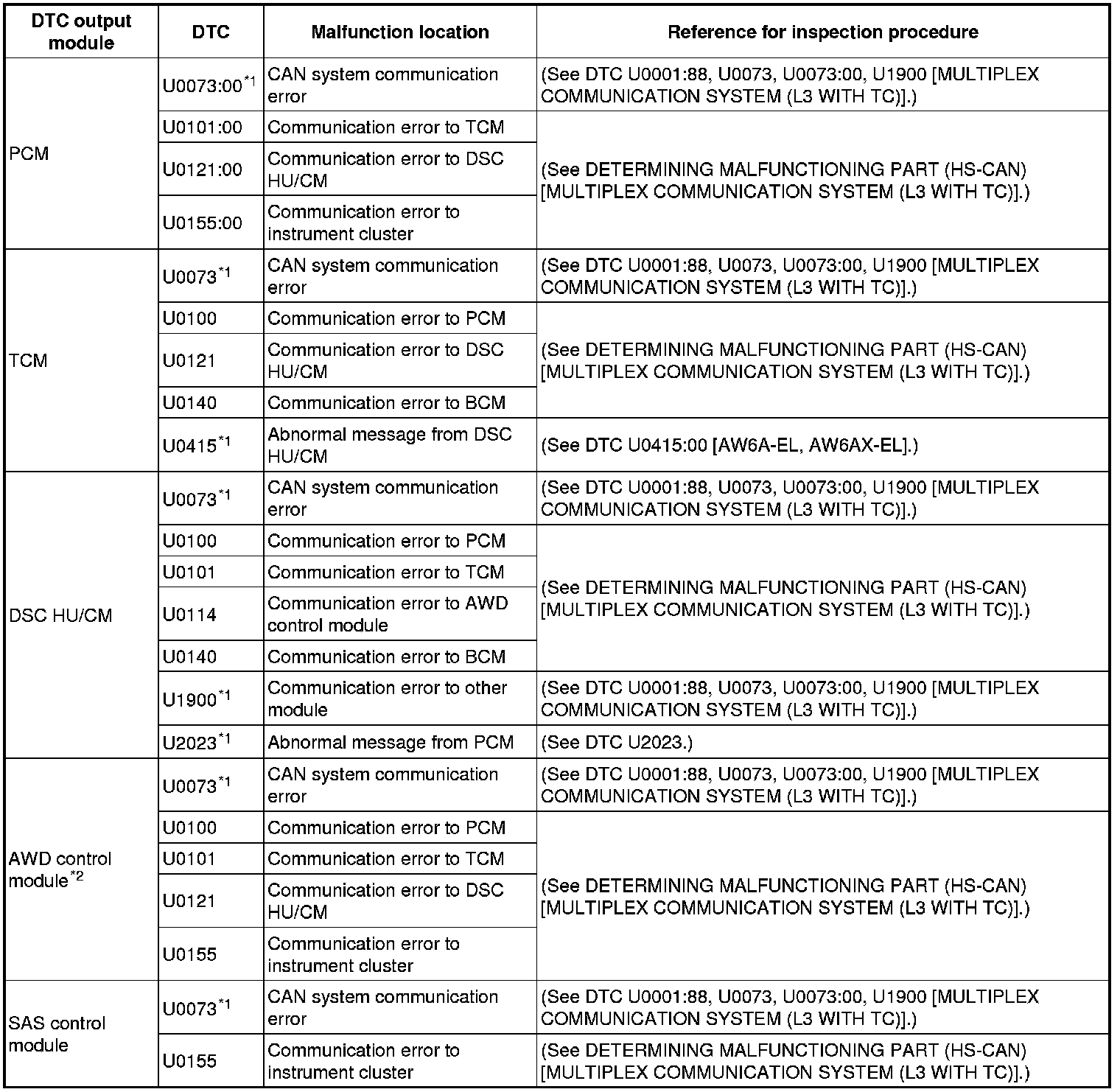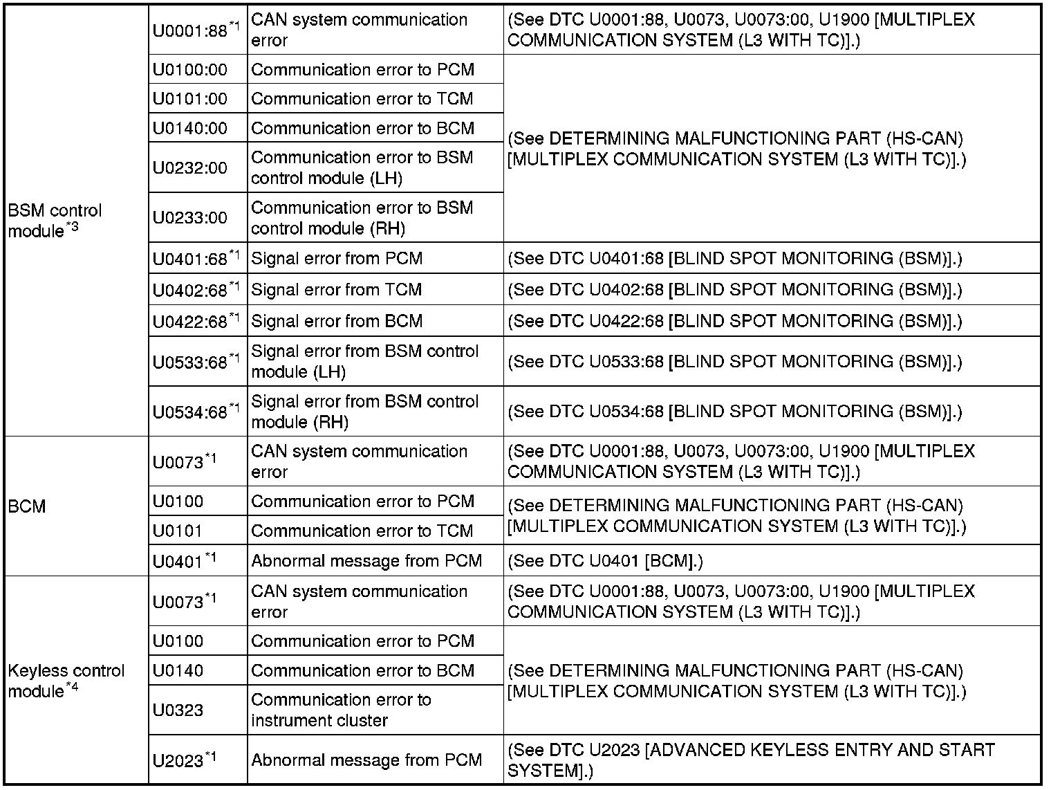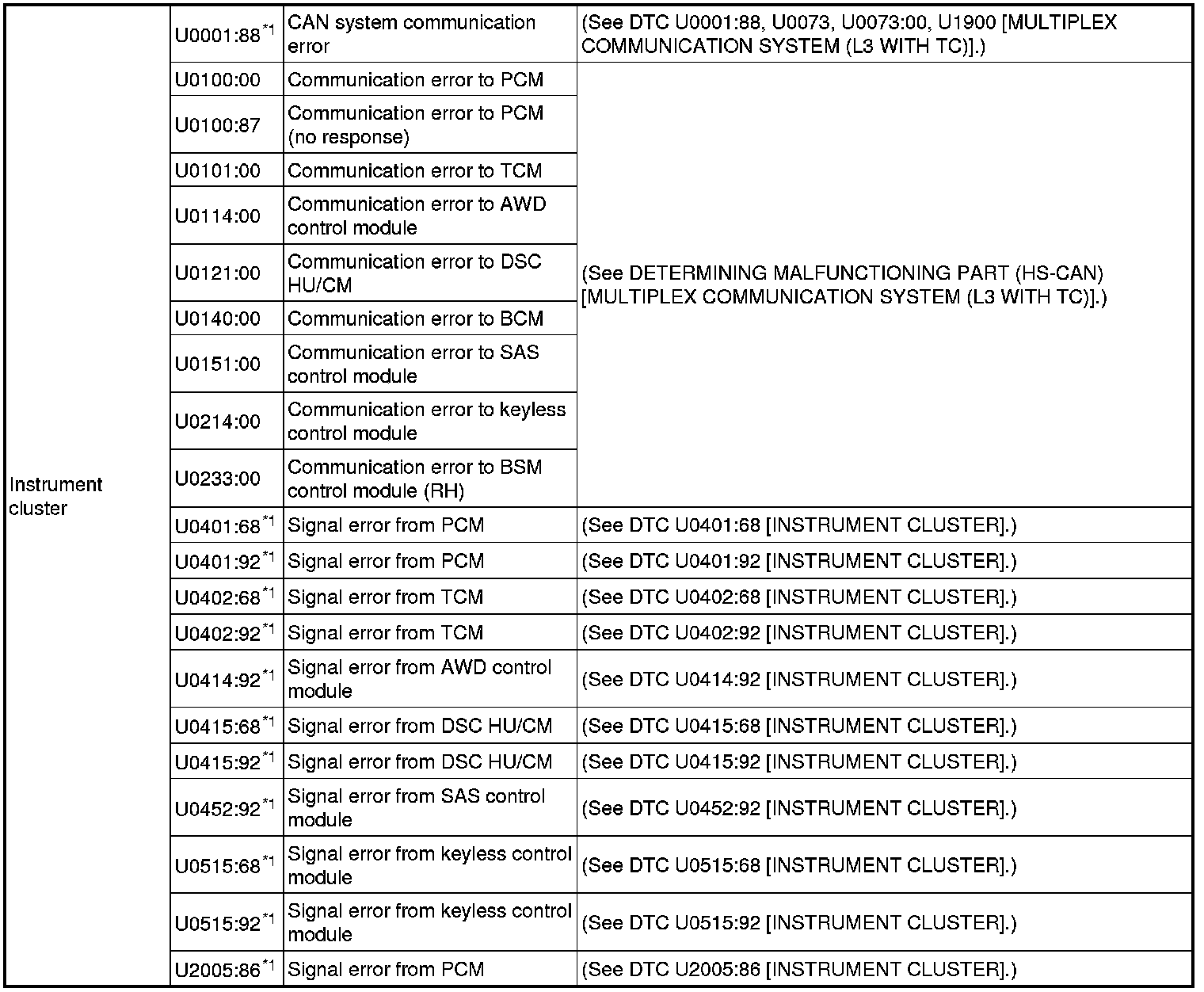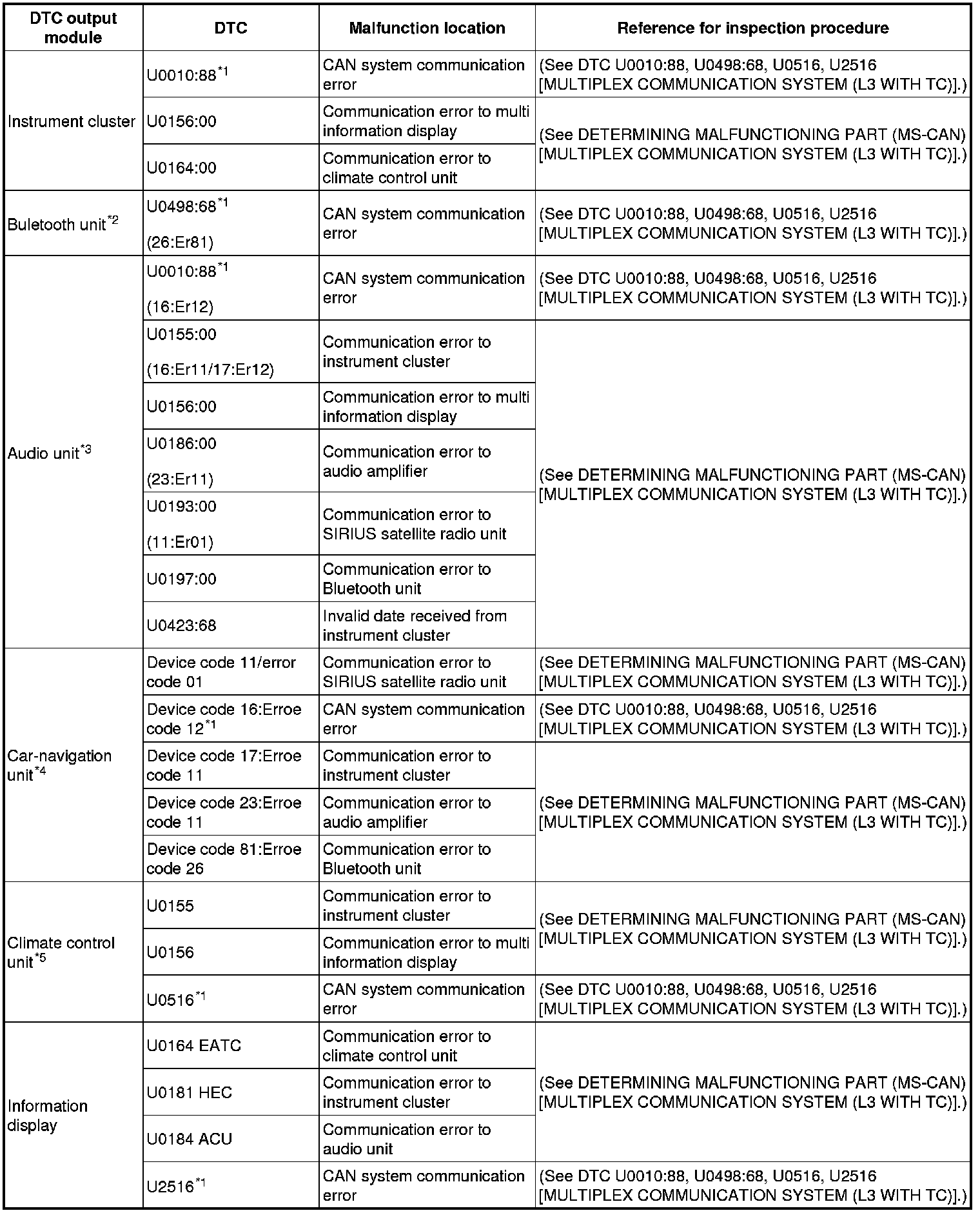 DTC TABLE [MULTIPLEX COMMUNICATION SYSTEM (L3 WITH TC)]