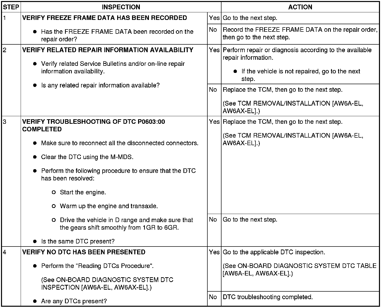 DTC P0603:00 [AW6A-EL, AW6AX-EL]