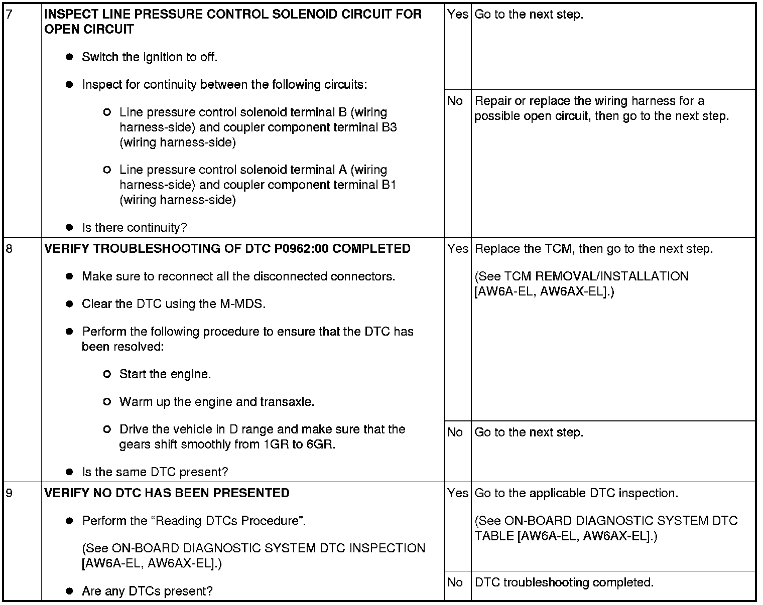 DTC P0962:00 [AW6A-EL, AW6AX-EL]