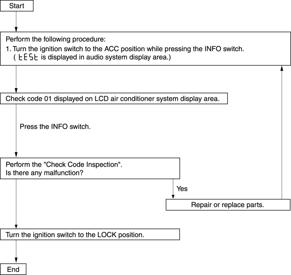 - The check codes are displayed in numerical order. (While performing the inspection, if you want to inspect a check code with a number smaller than the code number you are currently inspecting, terminate the check mode then repeat the inspection from the beginning.)