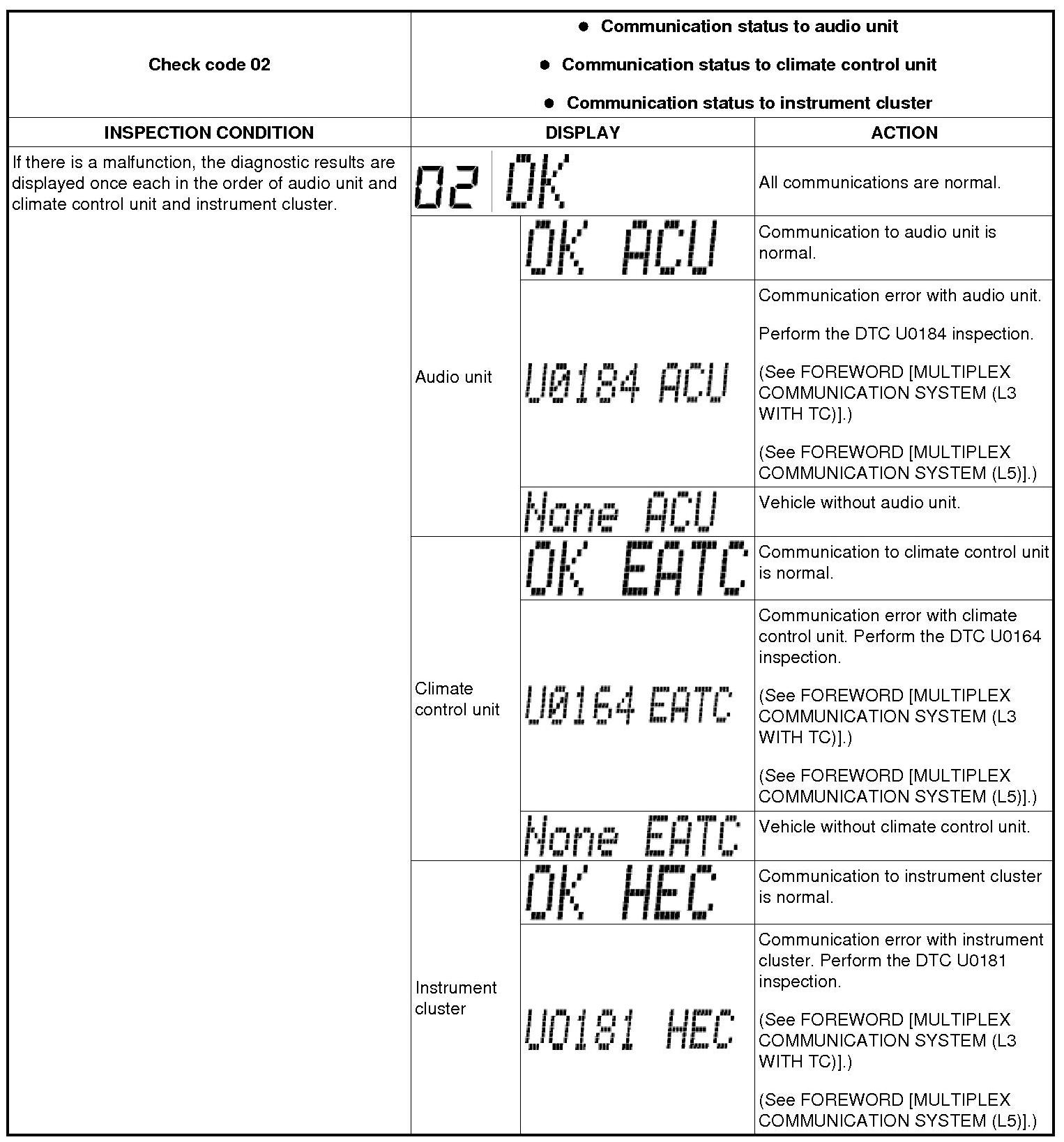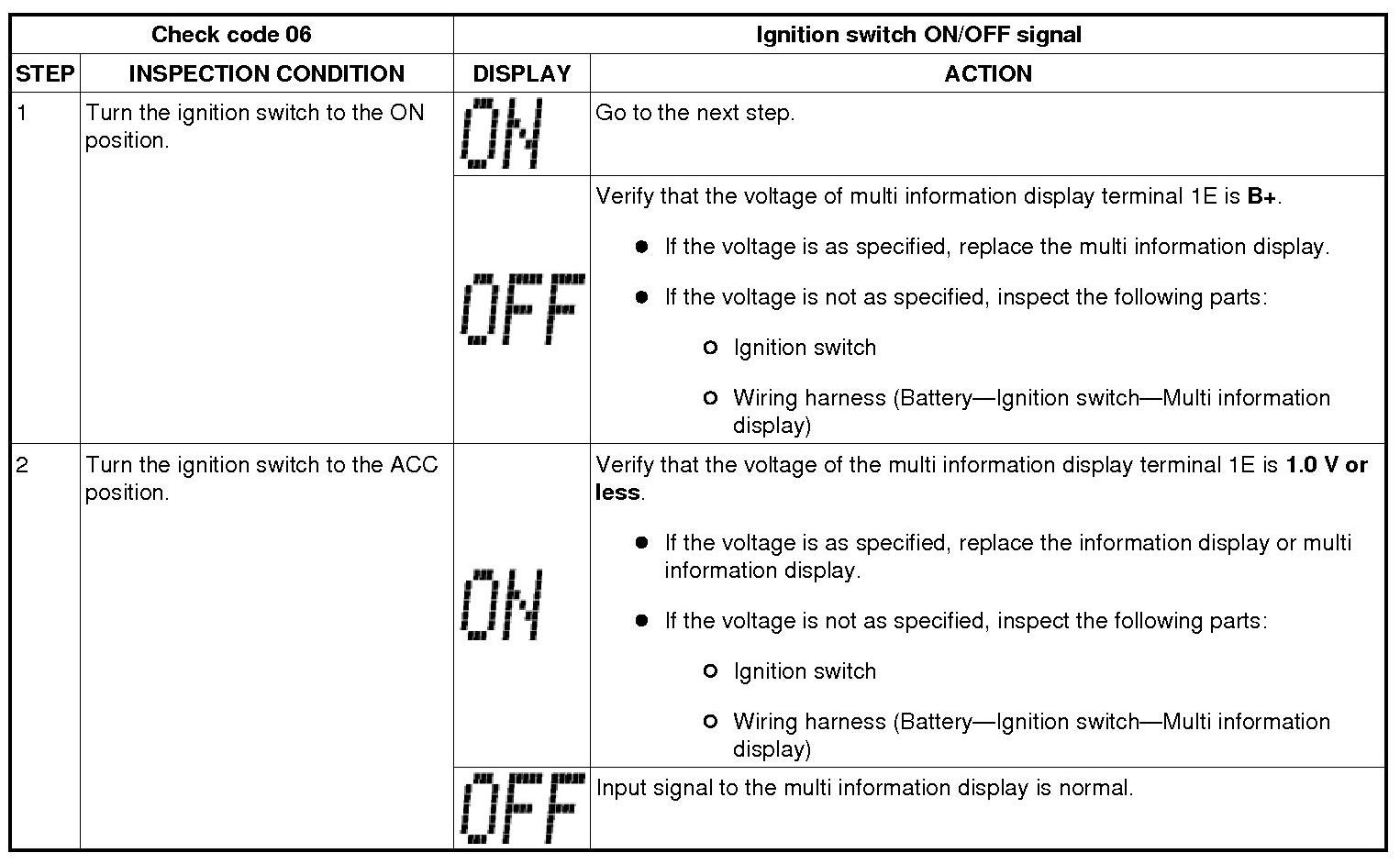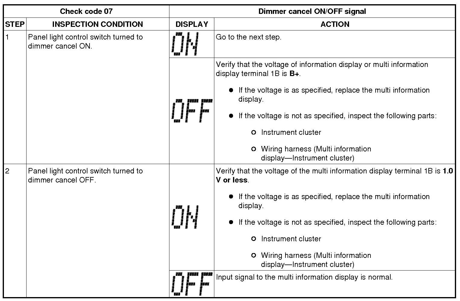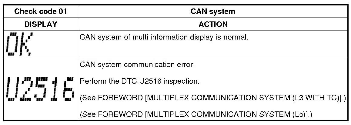 Multi Information Display Input/Output Check Mode