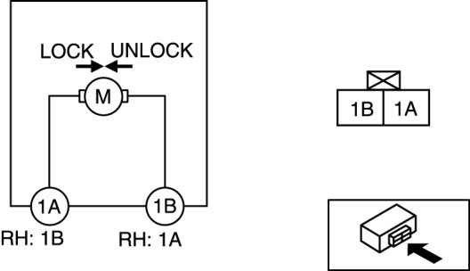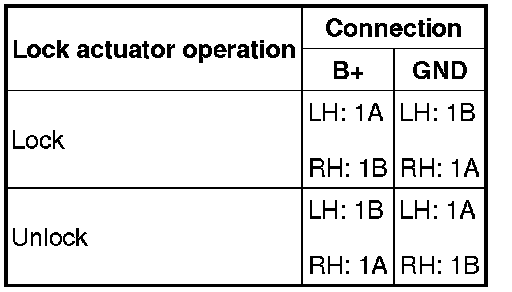 1. Apply battery positive voltage and connect ground to the corresponding front door lock actuator terminals, and inspect the front door lock actuator operation.
